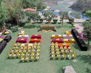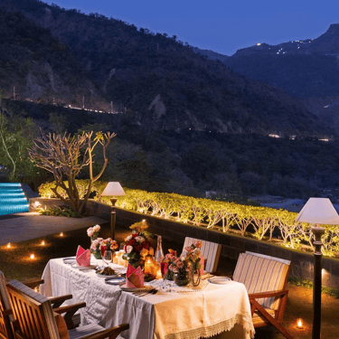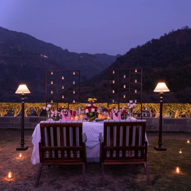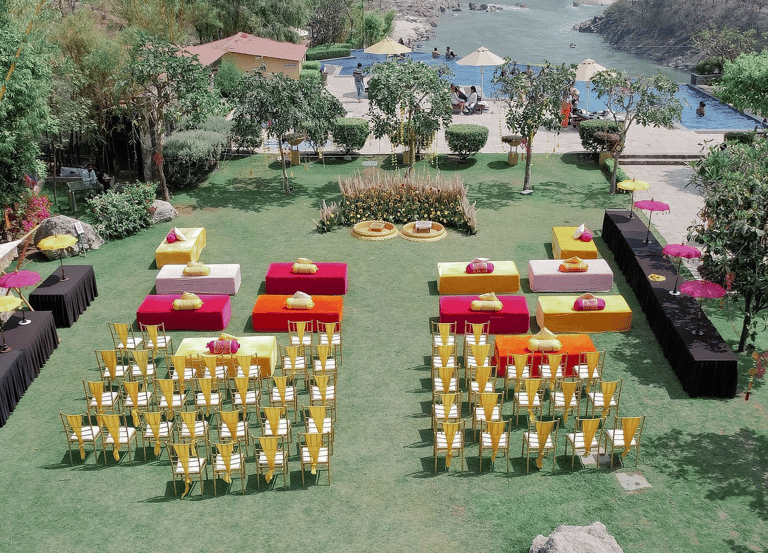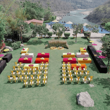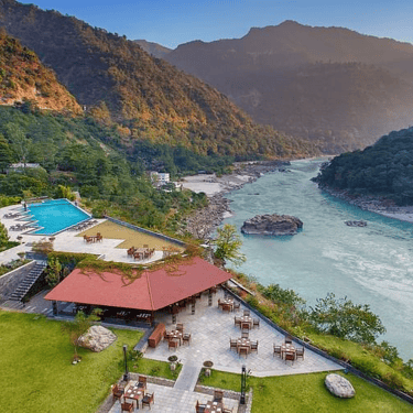 (Wedding Destination): Imagine exchanging vows to the sound of flowing River Ganga, surrounded by the Himalayan foothills, where every ritual carries deep spiritual meaning and timeless elegance. Aloha On The Ganges, Tapovan, offers a divine setting for couples who wish to begin their journey together in harmony, blessings, and serenity.