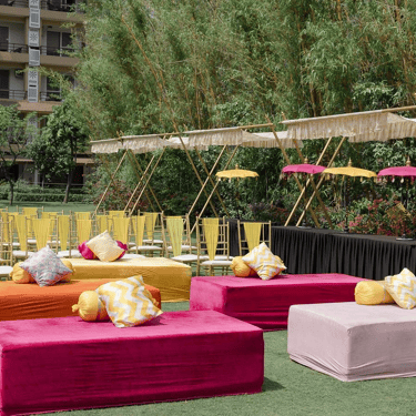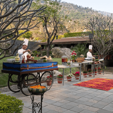 Upper Lawn is a lush, beautifully landscaped 6700 square meter garden with the majestic backdrop of the Himalayan foothills, providing a serene and elegant setting for any event.