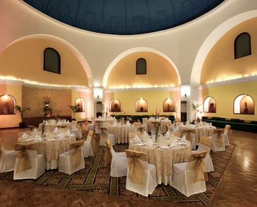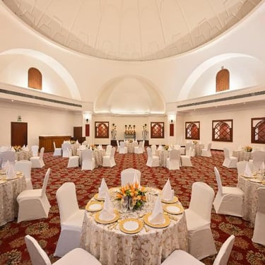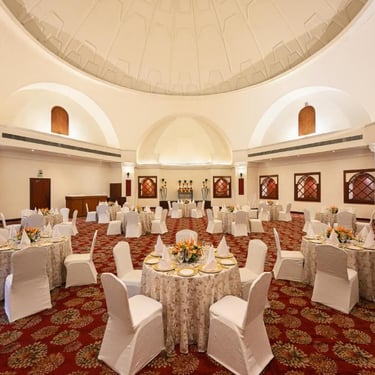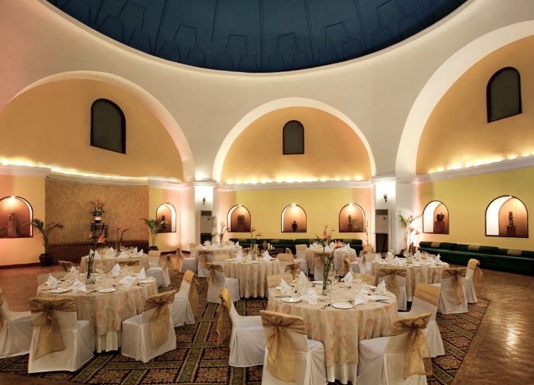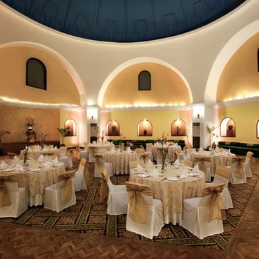 Our signature banquet hall is a visual and design treat, measuring 340 sq. mt. with a maximum capacity of 200 people.With a dramatic dome ceiling, trellised windows and stately columns, it is the ideal venue for parties and glamorous soirees.