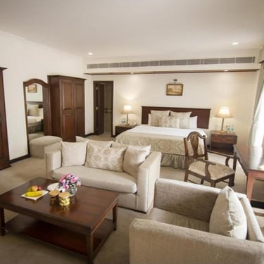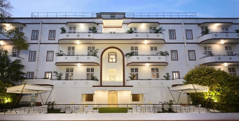 The Ambassador, built in 1947, features nostalgic, vintage decor with contemporary amenities, blending tradition with a modern twist. Its lush green surroundings and iconic red-brick architecture make a beautiful backdrop for your wedding photographs..