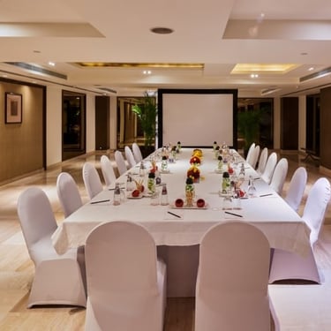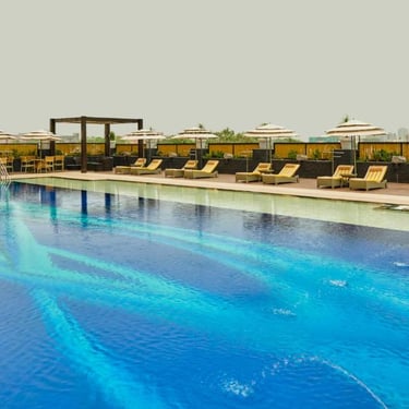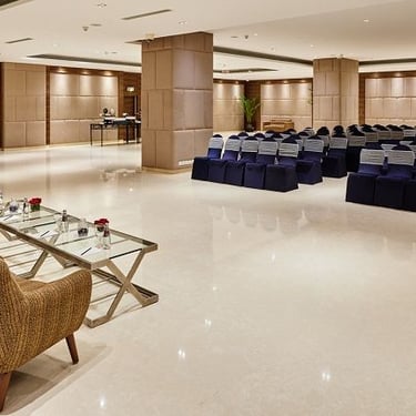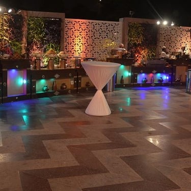 Outdoor Splendor: Enjoy romantic weddings or cocktail receptions under the open sky amidst our lush green lawns and scenic terrace areas.