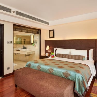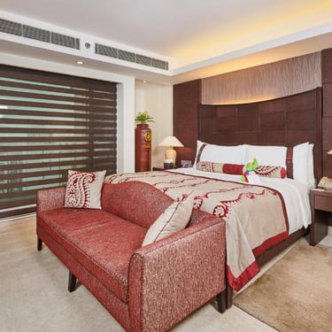 Luxurious Accommodation: Treat yourselves and your guests to spacious, soundproofed rooms adorned with subtle touches of Indian culture and modern amenities.