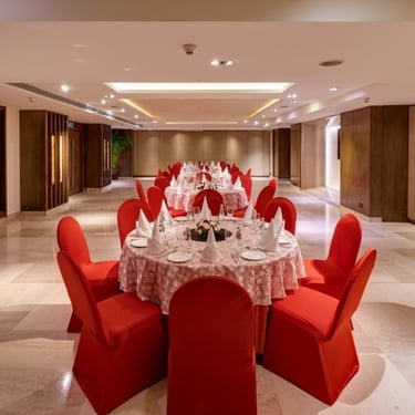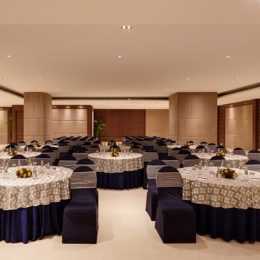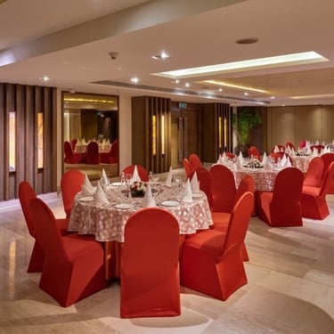 Exuding sheer luxury, our 6300 square feet pillarless ballroom with a pre-function area can be partitioned into two separate halls. Our culinary team crafts exquisite banquet menus tailored for corporate events, product launches, conferences, seminars, private parties, weddings, and more.