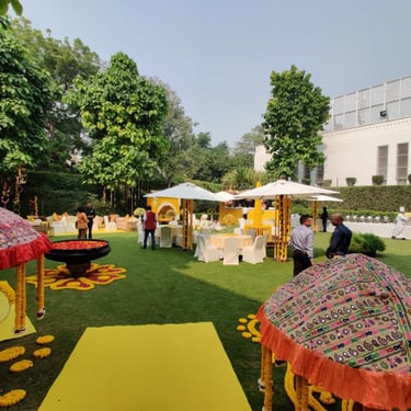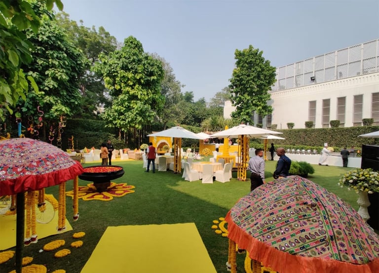 The Imperial Lawn in New Delhi offers a stunning 13,200 sq. ft. space for weddings and events. Overlooking the historic hotel façade, this venue can host 500-600 guests. Known for its luxurious ambiance and excellent service, The Imperial Lawn is perfect for both intimate and grand celebrations.