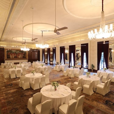 The Royal Ballroom at The Imperial, New Delhi, has high ceilings, opulent chandeliers, and elegant pre-function areas, it can host up to 500 guests. The venue features a magnificent oil painting and a balcony overlooking The Imperial Lawn, making it perfect for a grand and memorable celebration.