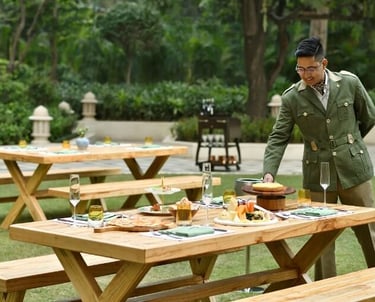 Our poolside lawns offer a serene and spacious setting for large events. Surrounded by lush greenery, this outdoor venue is ideal for luncheons, dinners, receptions, and parties. Enjoy the relaxed atmosphere with the impeccable service of our hospitality team, ensuring a memorable event.