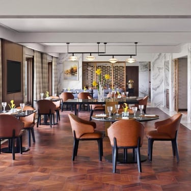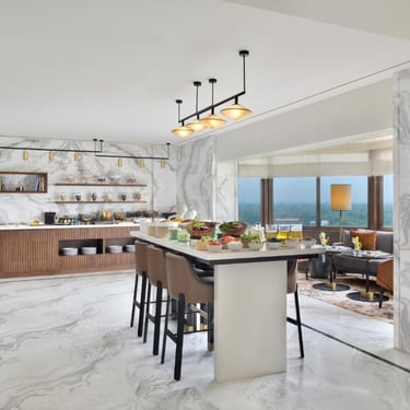 Long Champ is a sophisticated rooftop venue characterized by full-length French windows that allow natural light to flood the space. The venue, which offers panoramic views of Lutyens' Delhi and key heritage sites, is ideal for corporate events, meetings, and social gatherings.