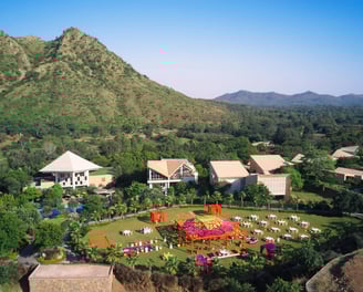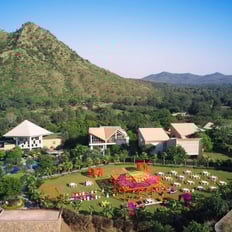 Nestled amidst the stunning backdrop of the Aravali Hills, Taj Aravali Resort & Spa, Udaipur is the ultimate wedding destination that blends luxury, elegance, and natural beauty. Whether you're envisioning an intimate celebration or a grand affair, Taj Aravali offers the perfect venue for your special day. Partnering with Geet Events, we ensure your wedding is nothing less than magical, with every detail tailored to your vision.