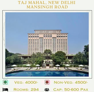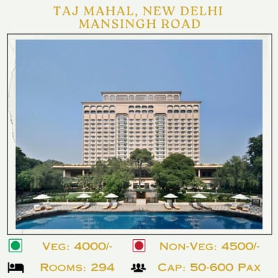 The Taj Mahal Hotel exudes timeless grandeur and sophistication. Its iconic architecture, luxurious banquet halls, and beautifully landscaped gardens make it a top choice for royal weddings. With its world-class service and gourmet dining experiences, It ensures every wedding is a spectacular and unforgettable wedding.