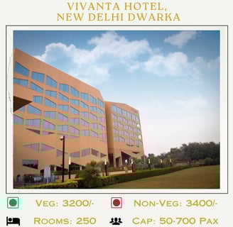Vivanta by Taj, Delhi Dwarka, Featuring spacious banquet halls, lush outdoor spaces, and state-of-the-art amenities, it’s an excellent choice for weddings. The venue is renowned for its impeccable service, customizable decor options, and exquisite culinary offerings, making it perfect for memorable weddings.