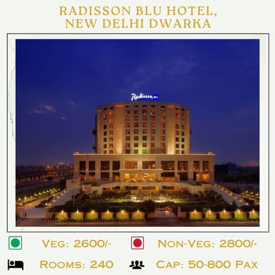 Radisson Blu Hotel Dwarka, offers a blend of contemporary style and premium services, making it a popular choice. It features elegant banquet halls, an experienced team, and versatile catering options. With its convenient location and luxurious amenities, it ensures a seamless and memorable wedding experience