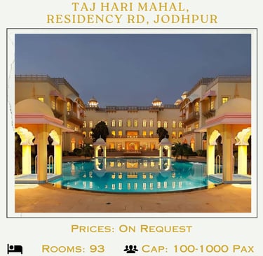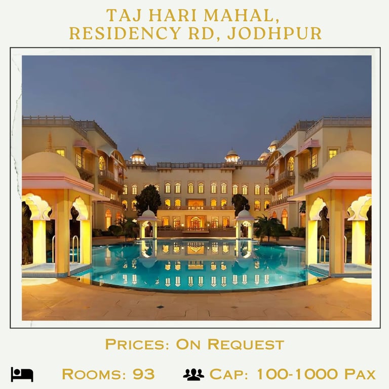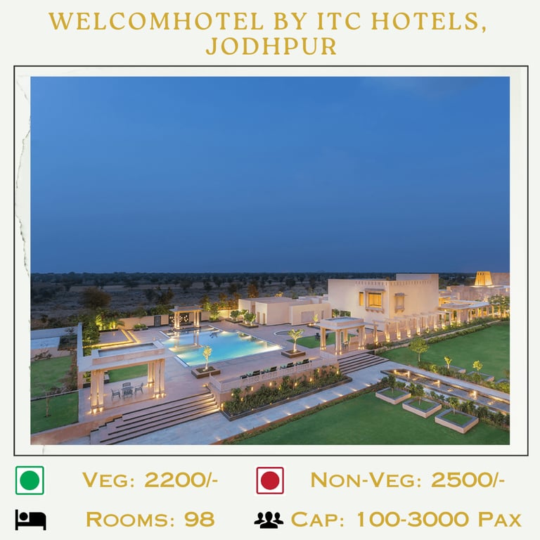Jodhpur, known as the "Blue City" and the "Gateway to the Thar Desert," is one of India's most captivating destinations for weddings. Its stunning heritage, royal palaces, and cultural vibrance make it a perfect location for couples seeking a grand and unforgettable celebration.